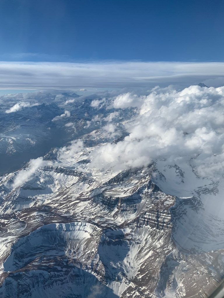 A viagem mágica à este que tem uma economia distinta os outros países latinos, começa com: “tripulação preparar para cruzar os Andes”. É nesse momento que você se depara com a força incalculável da natureza. Olhar pela janela do avião e ver o espetáculo da majestosa Cordilheira dos Andes, onde picos nevados se erguem em um espetáculo de tirar o fôlego, nos faz compreender que vivemos num planeta vivo e perceber o quão pequenos somos.
